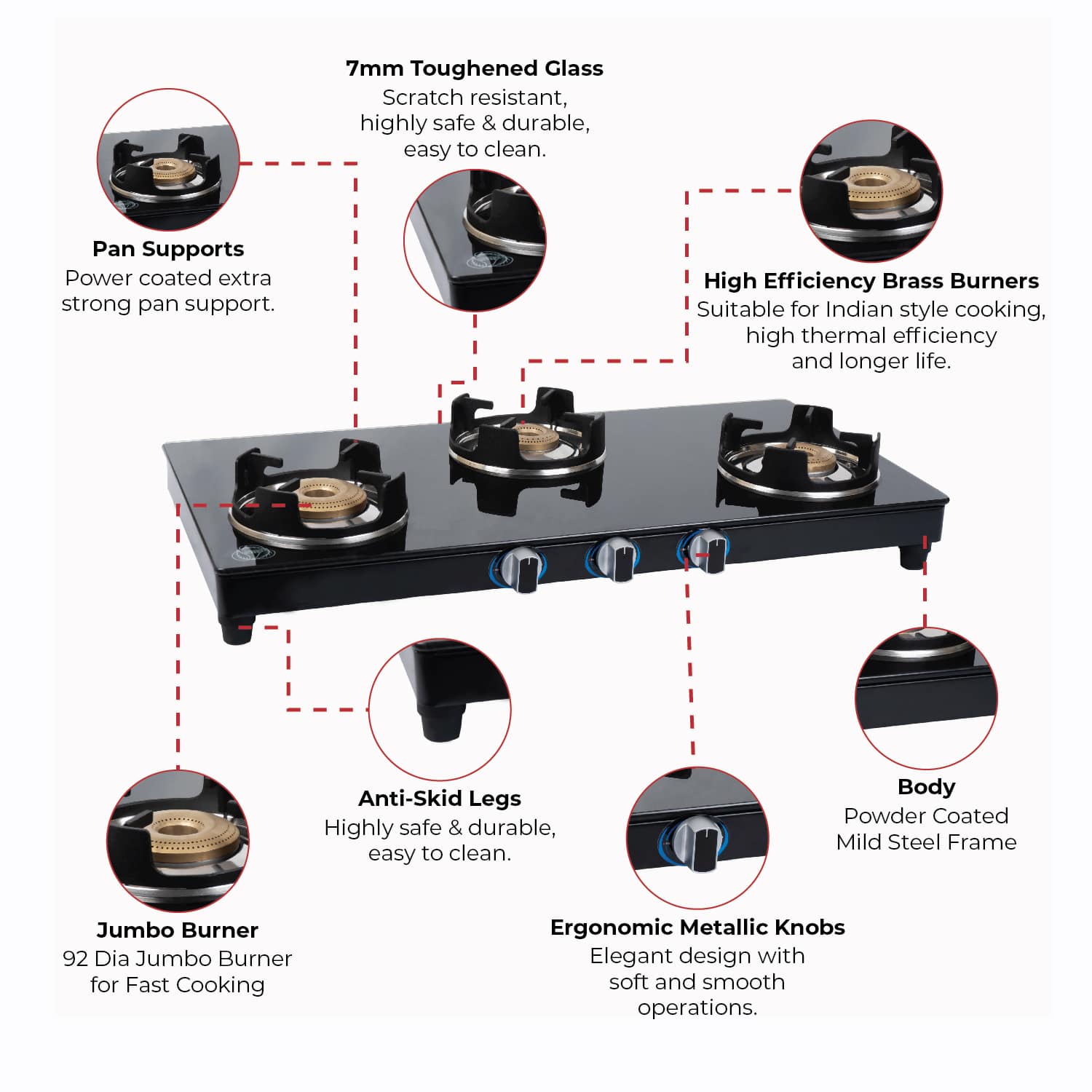 3. High effeciency Forged brass burner with Flame leakage Prevention technologhy