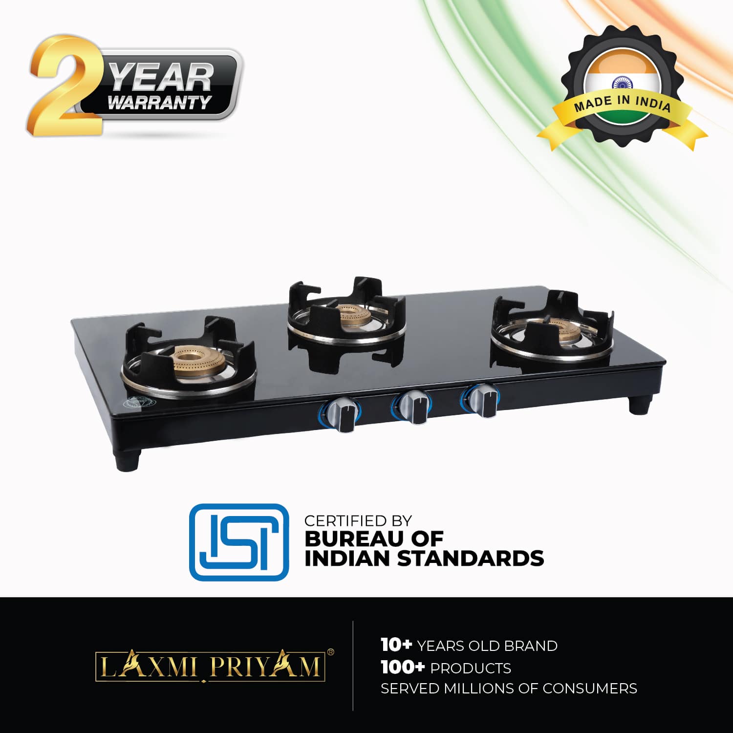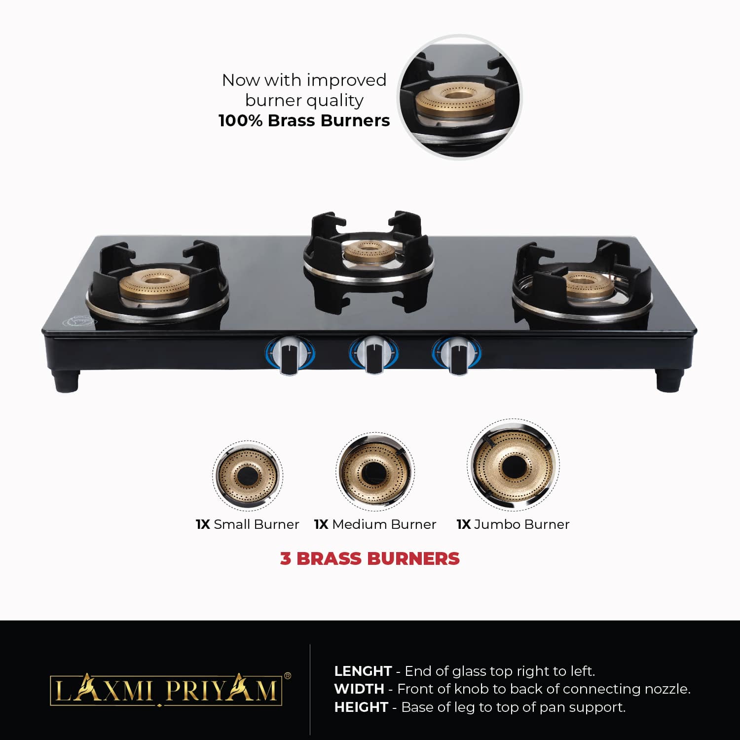 Laxmipriyam presents to you the classic version of toughened glass cook top in black color. It has been carefully assembled to provide a classic look to your kitchen along with high effeciency cooking. The stove has thick pron style pansupport that gives you better and stable utensil support.
