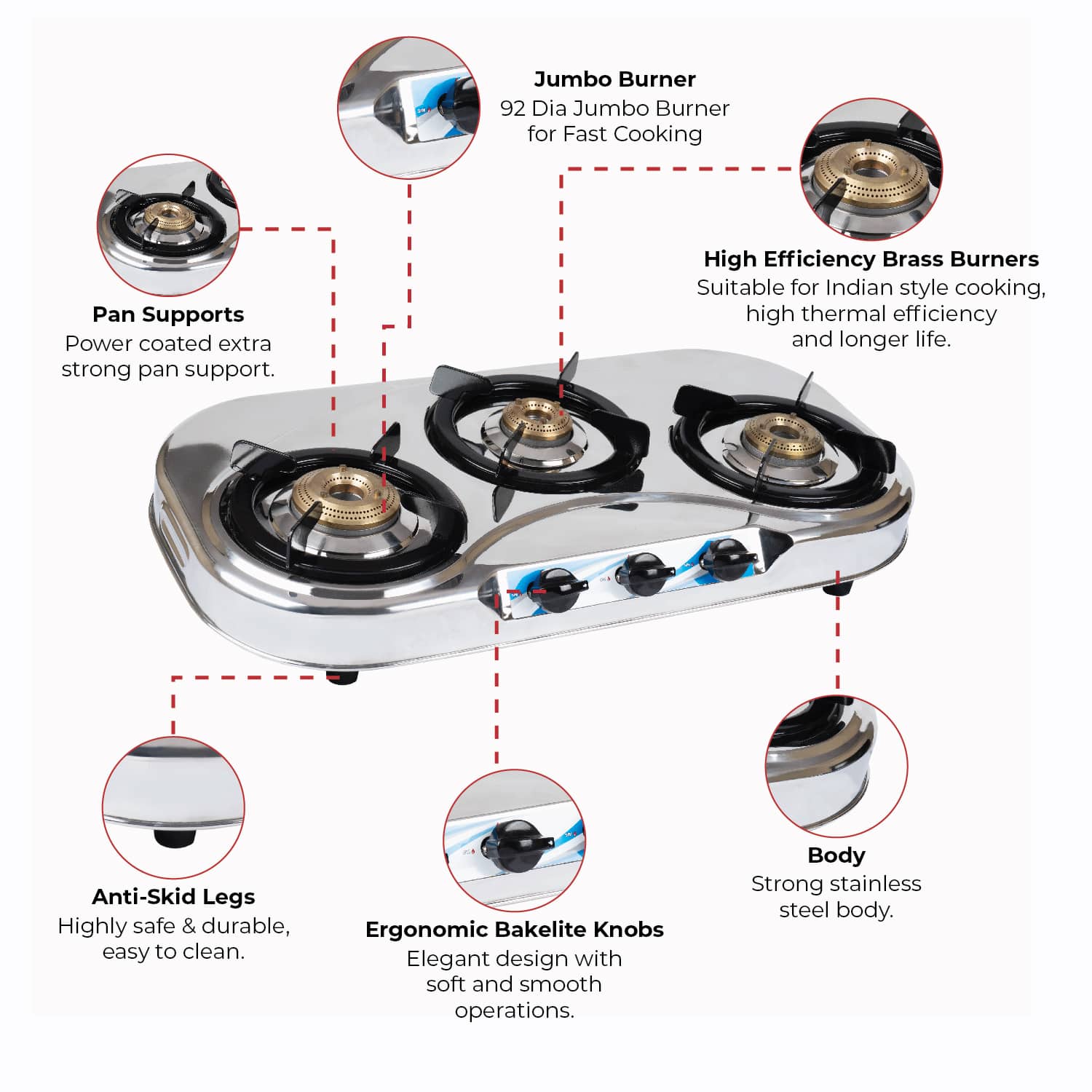 2. High effeciency brass burner with Flame Leakage Prevention technologhy
